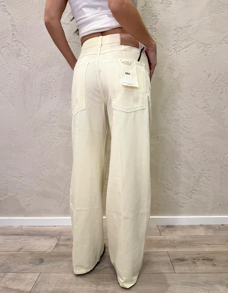 - VICOLO Τζιν παντελόνι με φαρδιά γραμμή (wide-leg) και κανονική μέση με θηλιές για ζώνη. Σχέδιο με πέντε τσέπες. Κλείσιμο με φερμουάρ και κουμπί. Η μοντέλο έχει ύψος 1,67 cm και φοράει μέγεθος XS